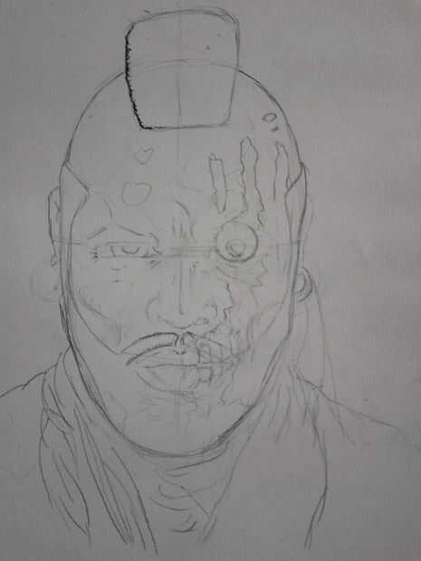 (Las líneas a lo largo de la cabeza de lado Mr. T por cierto fue una idea para dibujar sus plumas pero después decidí descartar esta opción.)