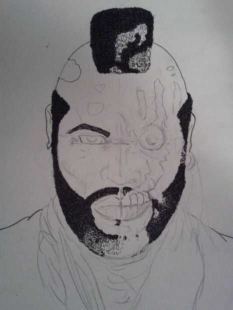 A continuación, hacemos el cabello que básicamente saqué muchos círculos pequeños y c una y otra y sobre el chapaleteo mutuamente hasta que era muy negro con pocas especificaciones de blanco mostrando a través de. Usted notará que hay lugares en su barba y mohawk que queda parcialmente garabateadas. Estas son áreas que voy a dejar así porque planeo en colorear en sangre y quieren estas áreas que se parecen más a salpicaduras de sangre.