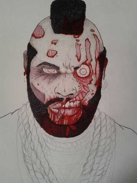 Entonces empecé a trabajar en las líneas de las cadenas. Las cadenas más grandes fueron las cadenas de cable, así que utiliza una imagen de referencia y comenzó a dibujar las líneas. Una vez que tuve las líneas generales de hecho empecé a repasar las líneas con un marcador punta fina amarillo. Luego borré todas las líneas innecesarias de mi lápiz dejando solo el contorno amarillo. Luego había coloreado en las cadenas en amarillo y había esbozado las líneas interiores en una luz naranja todos usando los marcadores de mi pintura. Más tarde decidió a línea mis cadenas en color negro para hacerlos estallar hacia fuera más. Entonces agregué sangre a las cadenas, hizo ver como derrame encima de su barbilla y la boca por lo que es pesado en el centro con manchas a lo largo de los bordes exteriores. Es importante mantener en dimensiones de la mente de las cadenas y a color por consiguiente por lo que la hace ver como la sangre en las cadenas. Esto puede ser difícil porque no hay suficiente atención a este detalle podría dejarlo como una mancha roja grande.