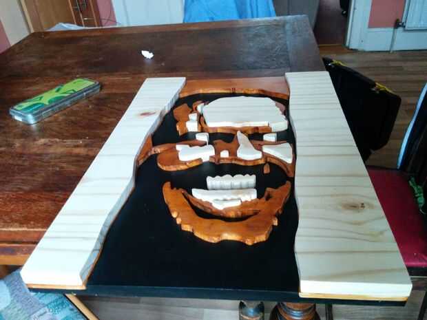 Así que pensé por qué no hacerlo de madera y utilizar una madera de color diferente para cada capa. De esa manera obtener ese tipo de perspectiva abstracta trippy cuando lo ves desde un ángulo pero todo confluye para formar una imagen cuando lo ves recto.
