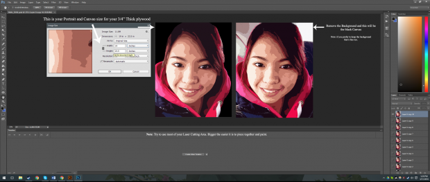 Eliminar el fondo y cortar el lienzo mismo tamaño como su retrato y luego pintarlo de negro.