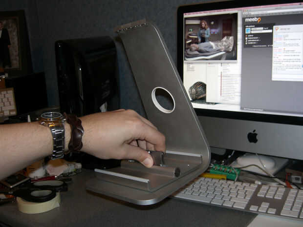 Se puede ver la cinta fácilmente une las dos piezas, la imagen muestra cómo la cinta soporta el peso del soporte fácilmente.