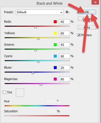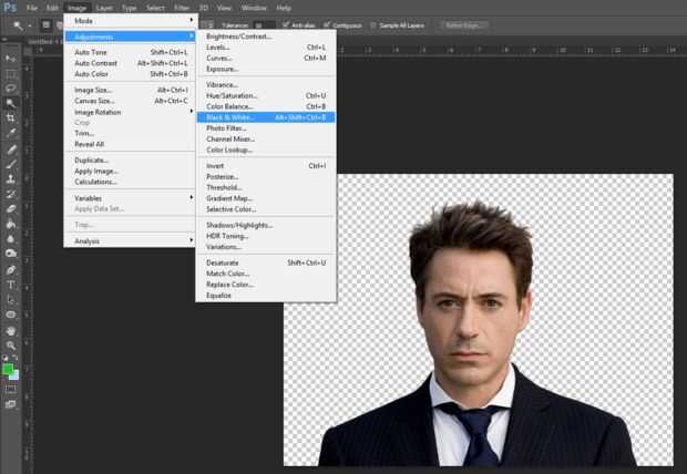 Si su imagen no es ya blanco y negro tiene imagen, ajustes, blanco y negro. Una vez que el panel se abre simplemente haga clic en Aceptar.