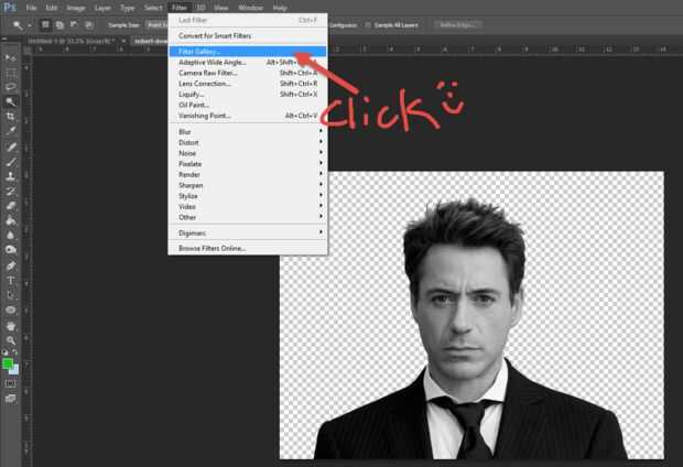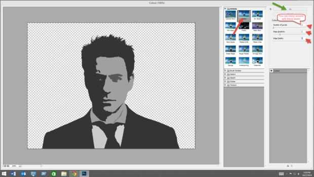 Iban a hacer lo que tiene menos color. Ir a filtros, Galería de filtros y recorte. una vez allí puede meterse con los niveles para conseguir que se vea como usted quiere. Al final desea que la imagen que menos color.