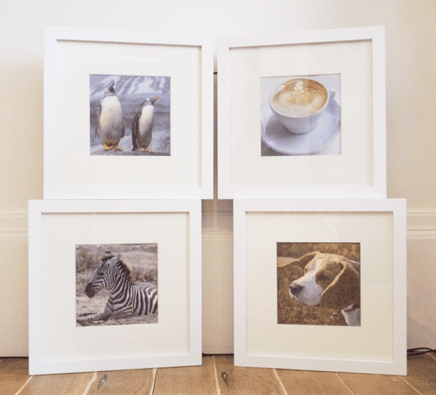 Así que estas fotos todos juntos son realmente un mapa de la actividad. Aquí estoy utilizando estas imágenes para mostrar actividad en distintas habitaciones de la casa. Si hay movimiento en una habitación, se ilumina el marco correspondiente. Ningún movimiento más, el marco se apaga.