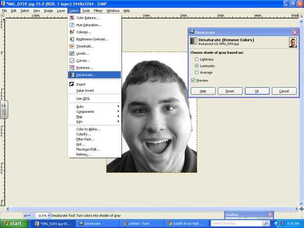 Utilizando el menú desplegable COLOR, seleccione desaturar y elija la opción que produce más contraste.