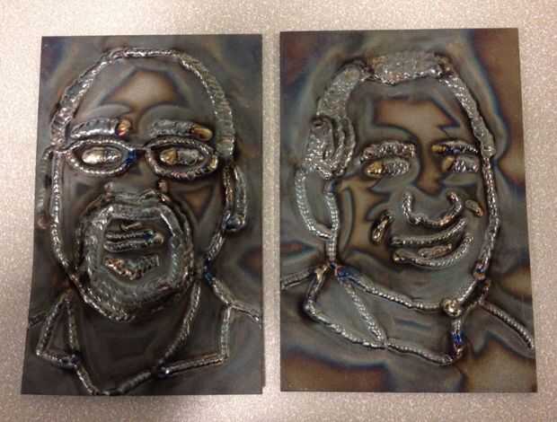 Justo antes de graduarme, decidí dar a cada uno de mi tienda retratos soldados instructores para agradecerles toda la ayuda que me habían dado durante los años. Hice estos dos retratos en la soldadora TIG en nuestra tienda mientras sus partes posterioras fueron dados vuelta.