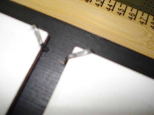 Ahora es el momento para colocar los azulejos. Usted debe tener mucho cuidado durante este paso de no romper los azulejos, puede suceder muy fácilmente. Decidir donde cada azulejo es ir y empezar poniendo en las grapas para sujetar las tejas. No Martille los abajo, desea que haya sobre un 1/8 pulgada brecha entre el azulejo y la grapa. Llevará a cabo en el muy bien a esta profundidad. Lo sentimos las imágenes borrosas, mi cámara no tiene un modo macro.