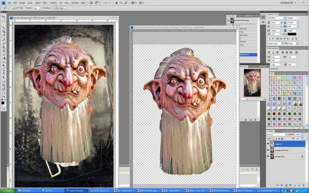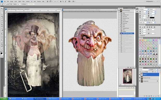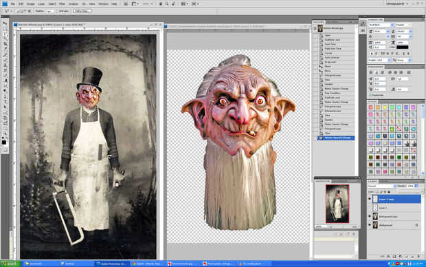 4) también decidí eliminar la barba de la imagen. Puesto que el carnicero llevaba un sombrero fantástico que quería mantener, usé la herramienta lazo para recortar la cara espeluznante para encajar bajo el sombrero.
