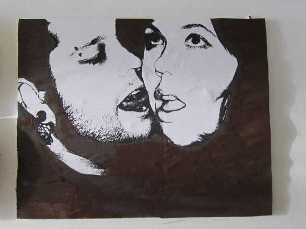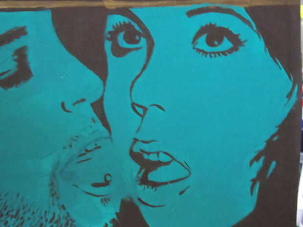 3 empezar a pintar los detalles con el color más oscuro. No pintar las líneas poco favorecedores, como grandes arrugas, manchas, unibrows y topos gigantes. Usted puede también subliman la imagen como usted desea, recorte de un milímetro o dos del contorno de una cara para hacerla más delgadas, o alarga las pestañas y añadiendo detalles al cabello. Lo bueno con la pintura es que te puedes equivocar! Siempre se puede corregir una línea inestable o una mancha mediante la adición de otra capa de color.