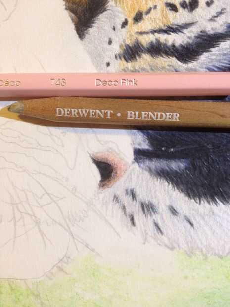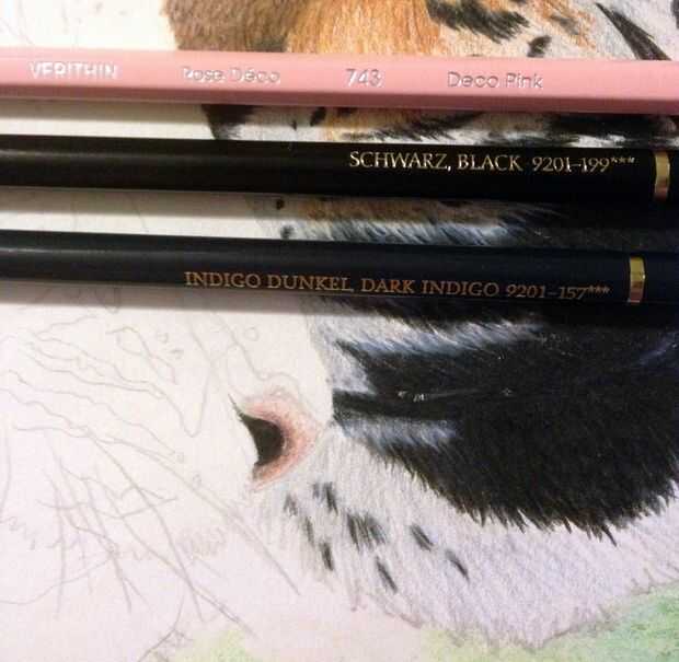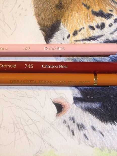 Bloqueo en la nariz con Deco rosa (PV). Utilizar una herramienta sangría para impresionar puntos pequeños en la parte superior de la nariz. Sorteo en pequeños círculos con la calabaza naranja (PV) para añadir detalle leve en la nariz cerca de la fosa nasal. Agregar más detalles (mismo método) con Crimson Red (PV) y Taupe. Superponer otra capa de Deco rosa y use oscuro Íñigo (FCP) y Schwarz negro (FCP) para rellenar la fosa nasal. Utilizar rojo carmesí y terracota (FCP) para añadir más detalles a la nariz. Ponga otra capa de Deco rosa y mezclar. Puede Agregar un poco de piel alrededor de la nariz, también, a partir de una capa de luz violeta (SA) y Schwarz Black detalles. La razón de la capa violeta es que, en la referencia, tipo de puede ver una pequeña pista de púrpura alrededor de la nariz del cachorro. Pasar esto con blanco, naranja (PV) y Taupe. Añadir detalles a la fosa nasal con el blanco.