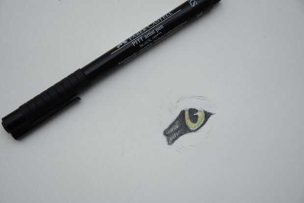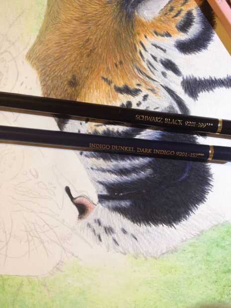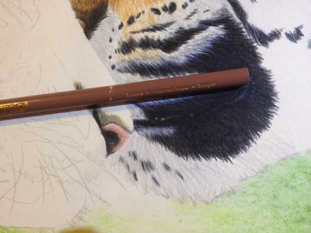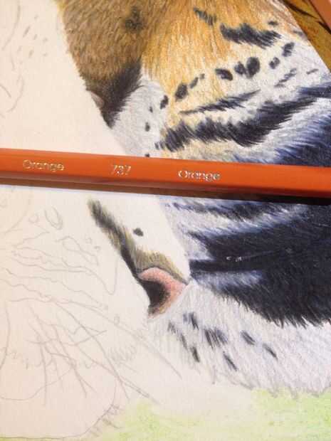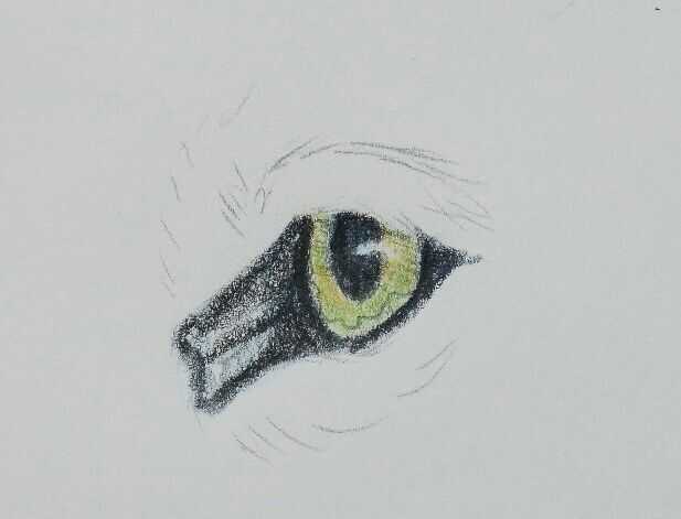 Para el ojo, dibujó un cuadro separado de un ojo de tigre para mostrar mejor los pasos. Es solo un dibujo rápido hecho sin una referencia, pero el proceso es el mismo.