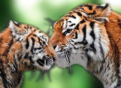 Para cambiar el fondo, doy la imagen de una transparencia (capa > transparencia > Añadir canal alfa), luego seleccionar libremente los Tigres. Invierta la selección usando el comando Ctl + I. La selección con selección de plumas > pluma. Utilice cualquier radio encontrará que funciona. Ahora usted puede disimularla o eliminarlo. Hacer una nueva capa debajo de la primera capa y agregar el fondo de la elección. Usé una borrosa versión de uno de mis propias fotos de algunas maderas.
