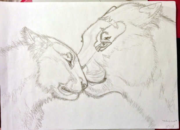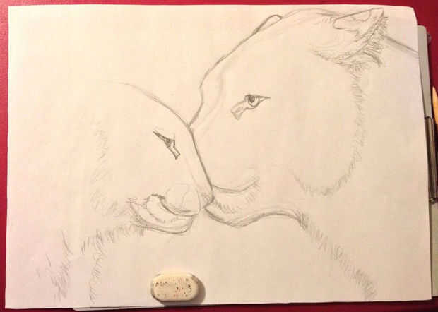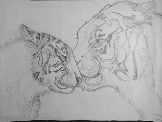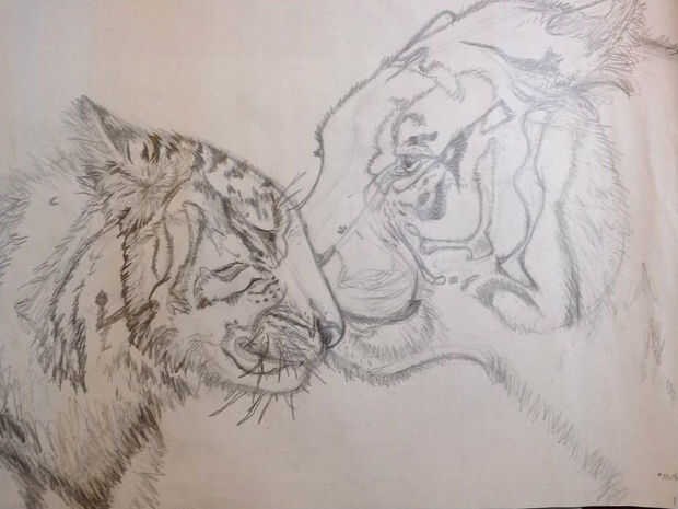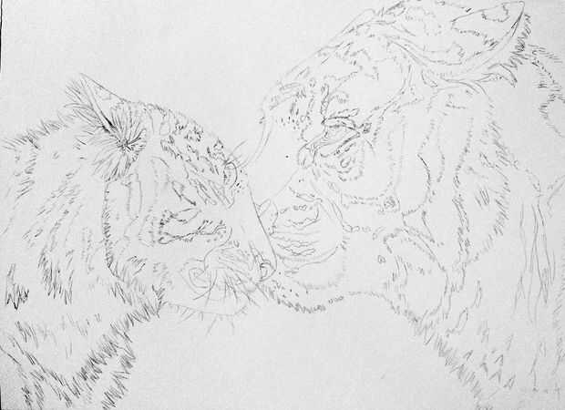 Comenzó con las líneas básicas de los tigres, después gradualmente agregar detalles como la piel, rayas, mapas de tono.