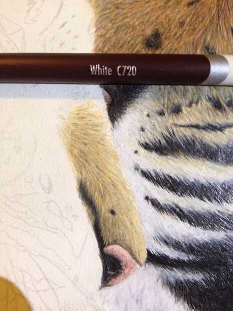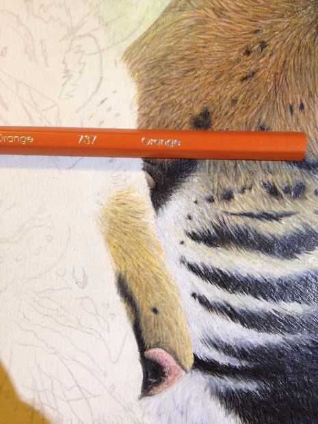 Sugerencia: Trate de usar diferentes tonos de naranja, amarillo y marrón para tonificar la piel en diferentes áreas. No lo hace al azar, sin embargo. Amarillo (bueno para destacados) aclara y aclara, mientras que brown (bueno para sombras) probablemente será embotado y oscurecer (los resultados pueden variar con los colores utilizados). Otros colores que solía entonar el tigre incluyen: luz amarillo ocre (FCP), violeta de Marte (DD), Marte rojo (DD), Topo (Cr) y naranja de calabaza (PV).