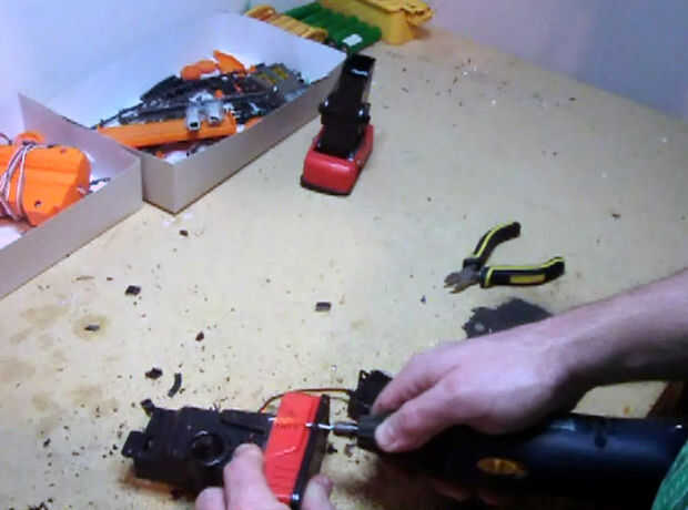En estas diapositivas, me di cuenta de que quería montar los servos modificados para las ruedas. Luego usé la dremel para cortar. Prueba y ajuste.