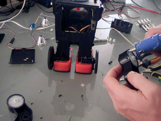 Utilicé dos engranajes servo más grandes y tenía pistola de pegamento caliente a los brazos.
