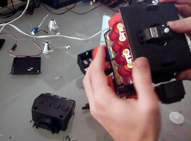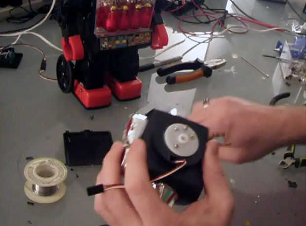 Fue montada en la cabeza de la misma manera que los brazos. Utilice una palanca del servo y atornille a la base de la cabeza. Usé 3 tornillos pequeños para montar mina.