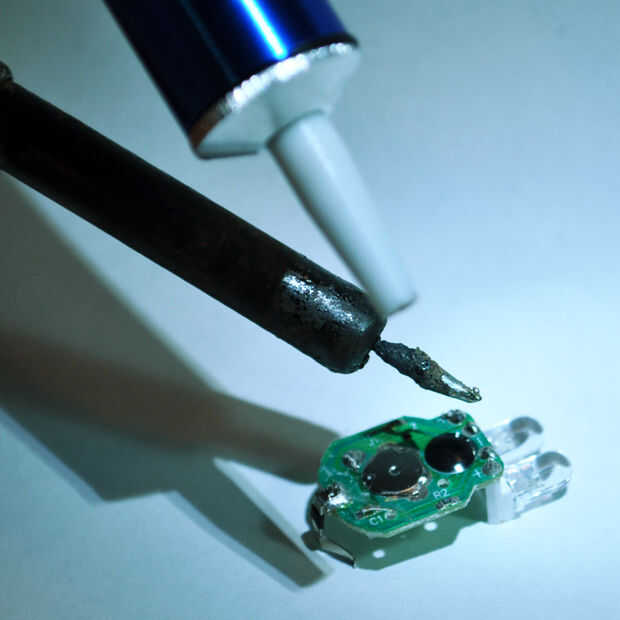 Empezar a quitar el ensamblaje de LED, esta es la parte más difícil, puede que necesite utilizar un lechón de la soldadura para eliminar la placa de soldadura todos antes de que los LEDs se movió, tomar poco a poco y no dejar el soldador en el PCB durante demasiado tiempo como es posible que daño la Junta.