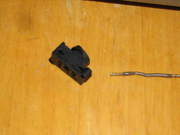 Vista del interruptor y un trozo pequeño de cable que reutilizado debido a cable nuevo no tenga grasa suficiente para fijar en las terminales del interruptor.