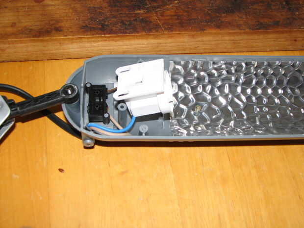 La cubierta inferior está apagado y el interruptor y la base para el tubo de flúor pueden verse claramente.