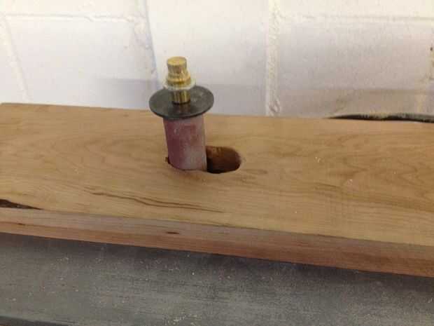 Encienda el router y ejecutar la pieza hasta llegar al tope. Apague el router y espere hasta que la broca deja de girar. Retire al espaciador y ejecútela de nuevo hasta que el bloque de tope. Apague el router. Una vez que la broca deja de spinning elevar la altura hasta la profundidad final de corte. Vuelva a ejecutar la pieza, con y sin el espaciador. Es la pieza delgada de hecho.