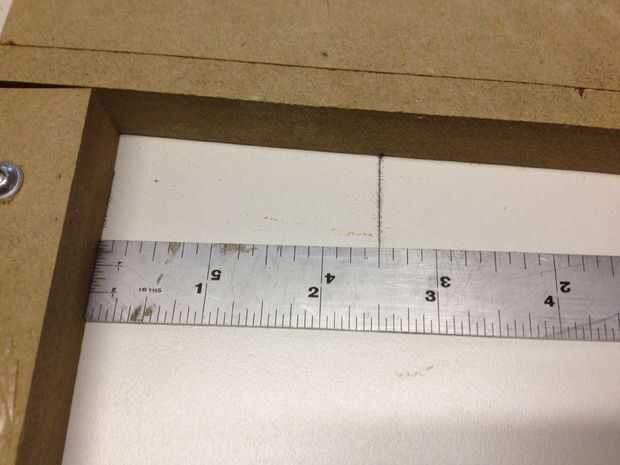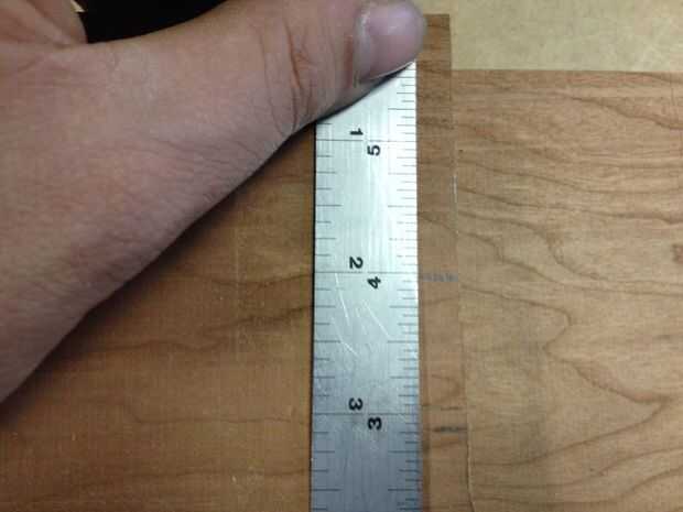 Mida desde el borde inferior de cada línea. Vamos a utilizar estas mediciones para establecer nuestra cerca. Mis medidas terminaron siendo 2" desde la parte inferior y más 3" desde la parte inferior. Me decidí por hacer un bosque de 1-1/8" de ancho.