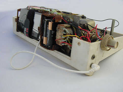 El jack de fono funciona con el amplificador y las baterías con el sonido fuerte para el uso al aire libre y es controlado por la perilla de volumen de la radio