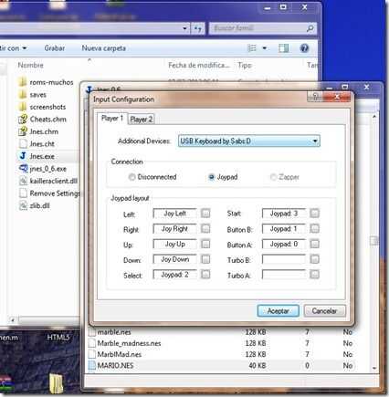 Una vez tengamos nuestro control armado debemos conectar a nuestra PC y reconocernos un dispositivo USB de Juego compatible con HID, con esto ahora solo debemos descargar el simulador de NES mas nos guste y configurar el control en la sección de preferencias.