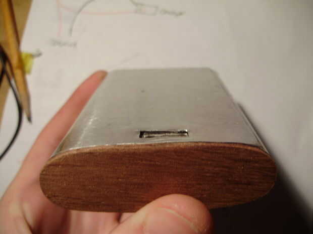 También hice tapas de madera para el USB al adaptador de iPod, usando el mismo método que antes. Estos sólo se pegan