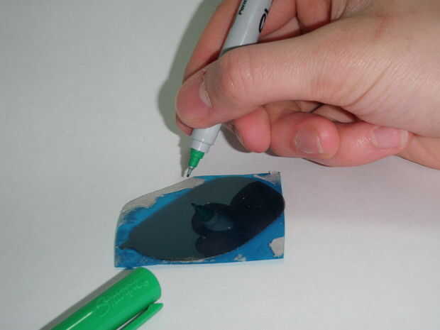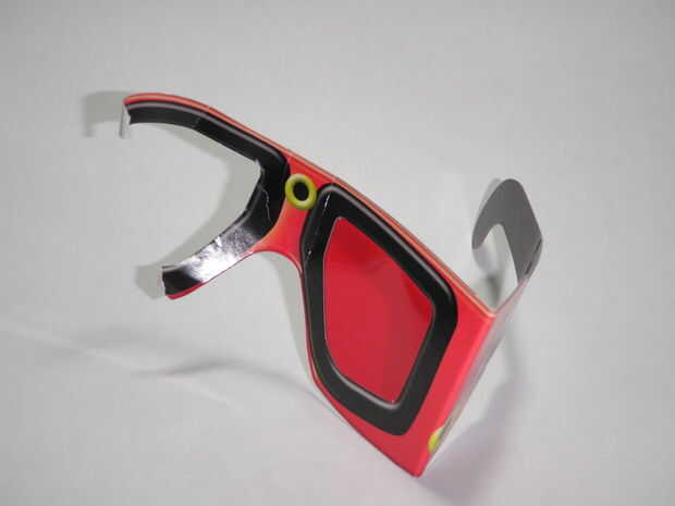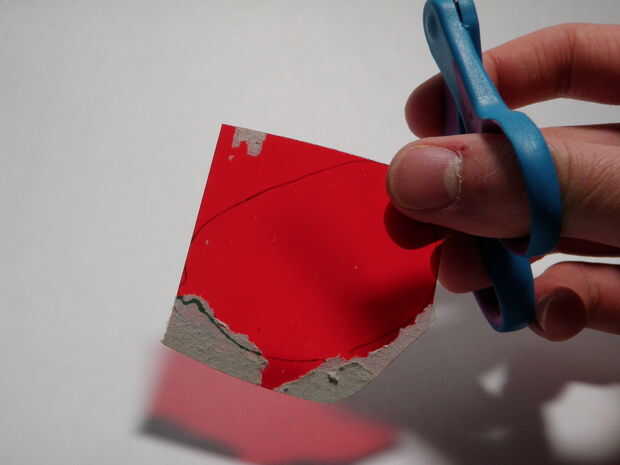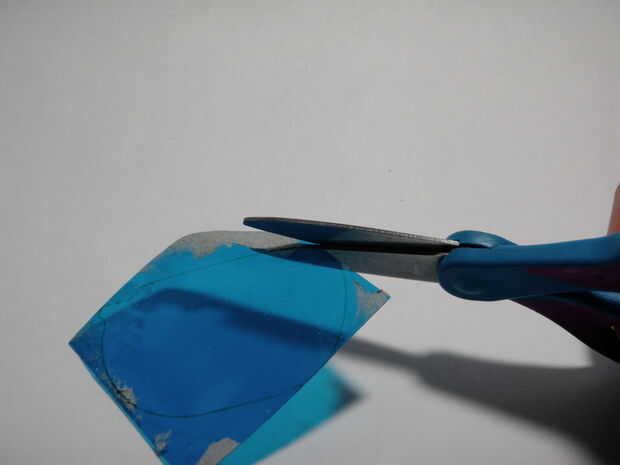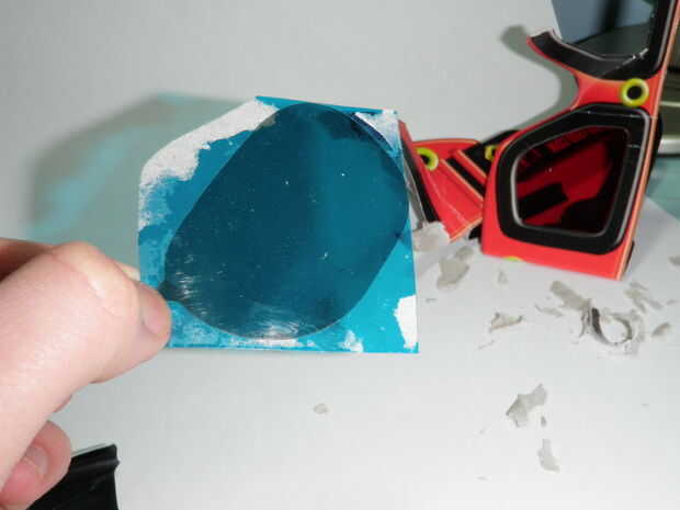 También conocido como "el paso que i demasiado a muchas fotos de"... en fin... Una vez que las lentes emparejadas, recubrirás, luego traza la forma de la lente en el plástico coloreado. Hacer esto para ambos lentes y luego recorto.