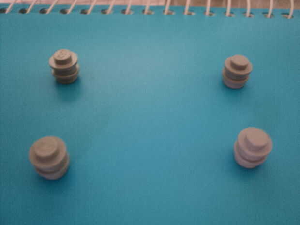 hacer cuatro grupos de piezas placa 1 x 1 redonda como en la imagen