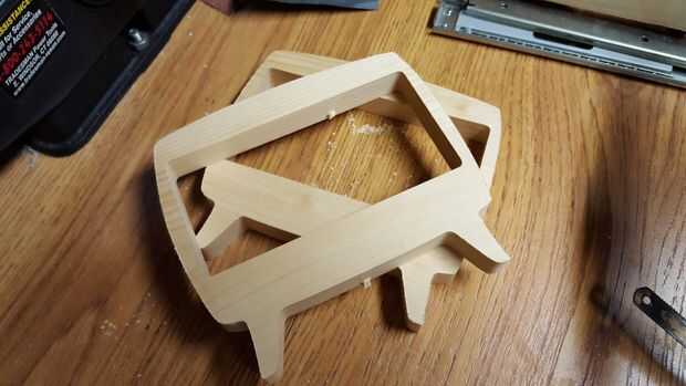 El recinto actual sólo utiliza cuatro piezas de madera. La pieza frontal "pantalla" y la pieza posterior son de trozos de madera contrachapada de 1/4". El cuerpo del recinto es estantería de pino sólo barato.