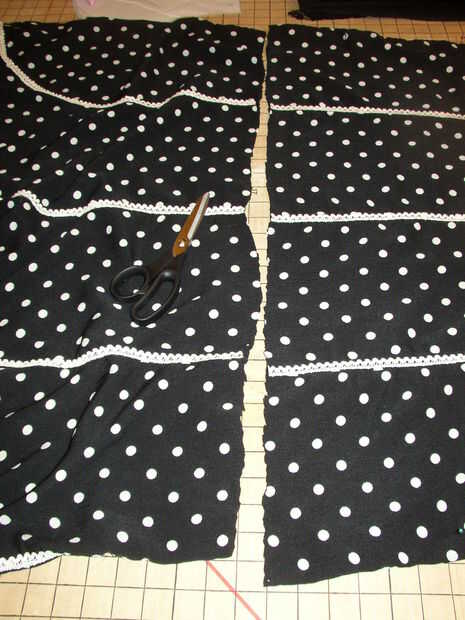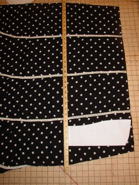 Para la fase de construcción, empecé cortando la cintura de la falda original. Luego corté recto en la parte superior de la falda para conseguir un trozo lo suficientemente grande como para que el panel delantero de la blusa, dejando suficiente longitud en la parte inferior a la longitud correcta de la falda del vestido.