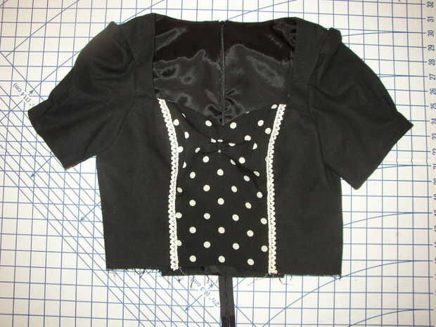 Creó una guarnición desde el mismo patrón de cosido en la blusa a la guarnición y añadido mangas antes de colocar la falda.