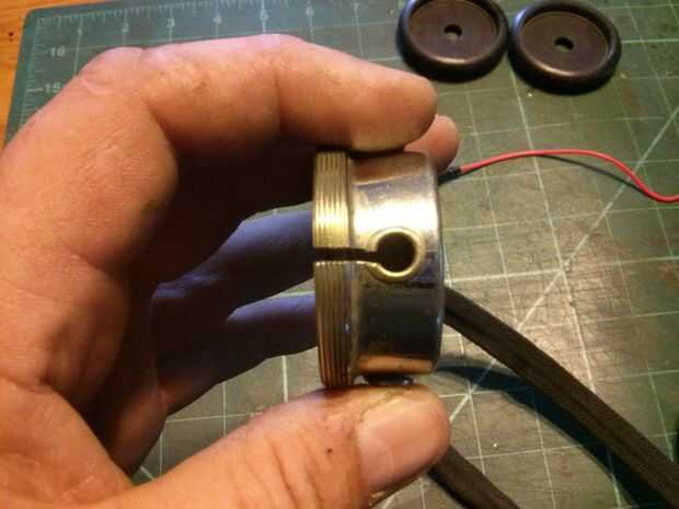 Como se mencionó antes, carecen algo de mis conocimientos de soldaduras, así que decidí tomar la ruta más simple y cortar un canal en la base. Esto me permitiría cambiar los altavoces, en el futuro, sin mucho esfuerzo. En primer lugar, tuve que quitar la carcasa del bastidor del alambre. Fácil de hacer, ya que se llevan a cabo allí en pivotes para que sólo extiende la cubierta del resorte y apareció justo. Entonces había fijada en mi mordaza y utiliza mi Dremel para cortar el canal. En el par que he mostrado aquí, ya era un agujero donde alimentan los cables originales, así que amplié el canal para llegar a eso, pero en el modelo de Brandes, no hay ningún agujero, así que el canal era mucho menor. Esto significó que en el modelo de Brandes, pude un nudo simple en el cable para parar de tirar a través, pero en este par, tenía que idear otra manera de dejar suceda, que podrá entrar más tarde.