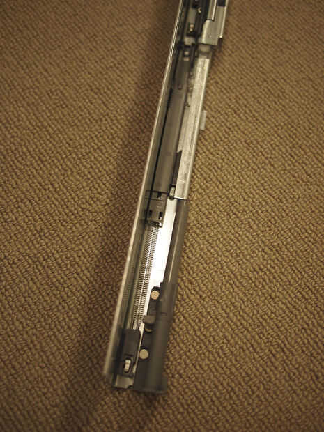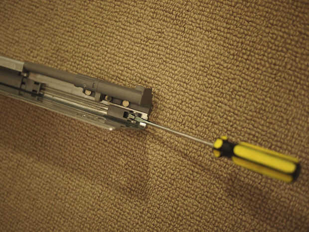 En primer lugar, extender el deslizador (y mantenga extendido hasta que se eliminan los mecanismos)