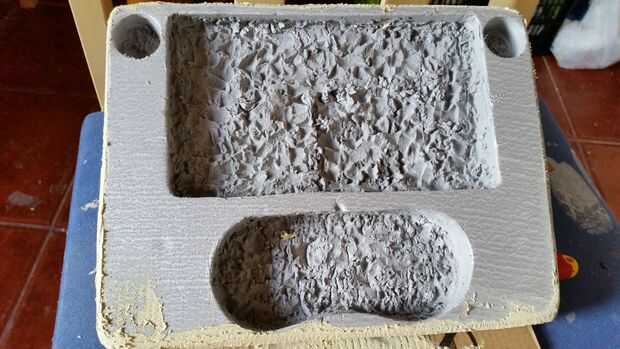 Así que empecé con algunos poliestireno expandido (primera imagen), pero era demasiado débil y no es tan fácil conseguir un acabado liso. Entonces me pareció que el aislamiento de la espuma realmente super barato para una hoja grande en la tienda local de bricolaje. Así que me cambié a usarlo.