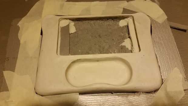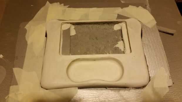 Comencé a cubrirlo en carrocería relleno, pero darse cuenta muy rápidamente que era caro y hace mucho lío lo forma, cambié a usar plastilina. Esto fue super rápida y sencilla. En una noche tuve una forma acabada que estaba contento con. Originalmente planeé dejar los agujeros para los altavoces, pero tenía más sentido para recortar en una etapa posterior.