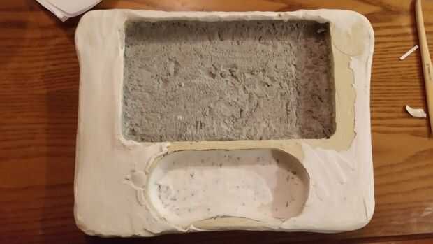Finalmente, establecidas algunas tarjetas y cinta alrededor de la mitad del recorrido para empezar a hacer el molde y cubrió un medio en rápida epoxy set que yo tenía por ahí de un trabajo anterior. La razón para hacerlo fue que he leido por ahí que algunos arcilla de modelado puede interferir con el proceso de curado de algunas resinas. Así una barrera de epoxy es un método de detener esto. Además, en 15 minutos, yo había cambiado el molde suave, en algo que era difícil y podía trabajar con fácilmente sin poner impresiones de pulgar en la arcilla suave.