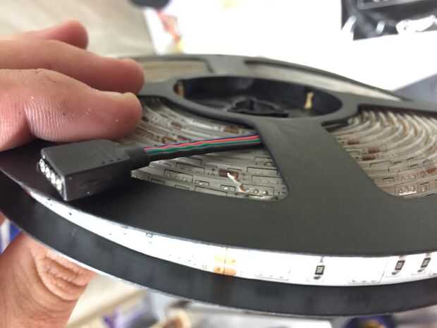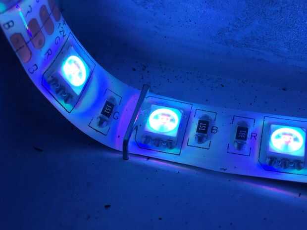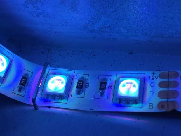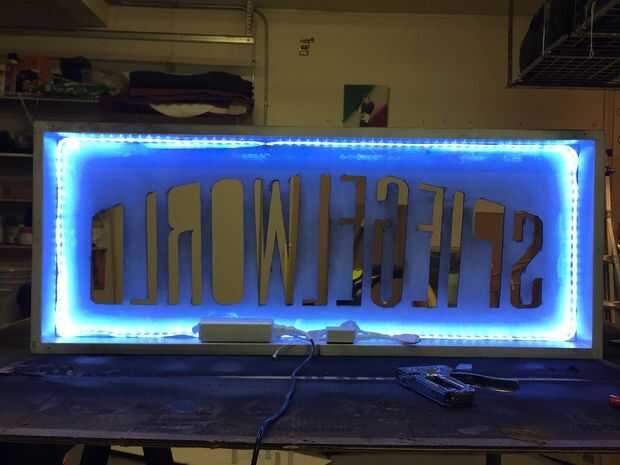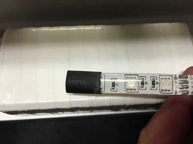 Siguiente es conectar su cinta de LED tira y fijarlo correctamente al cuadro. Opté por usar una tira incluso en todos los lados para asegurar que la luz se Esparza uniformemente dentro de la caja. Usé la pistola de grapas para fijarlo cada 10 pulgadas o menos y tuvo mucho cuidado para asegurar los ángulos en los lados. Tenga cuidado de no poner una grapa a través de la banda real, podría matar a su cadena y ser un gran dolor para remediar.