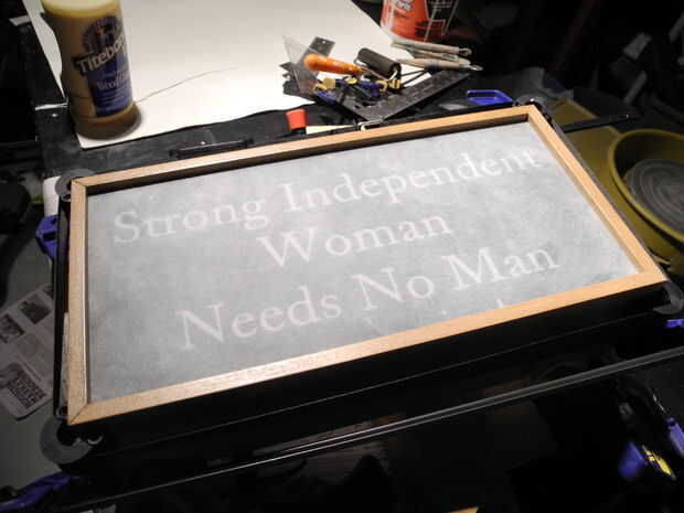 Para montar el cuadro usé una abrazadera en las abrazaderas superior y rápidas en la parte inferior para tirar todo a la Plaza. Decidí pegue solo y no molestarse con clavos. Después de que el pegamento seque me dio un ligero lijado en las esquinas y retocarse el poliuretano.