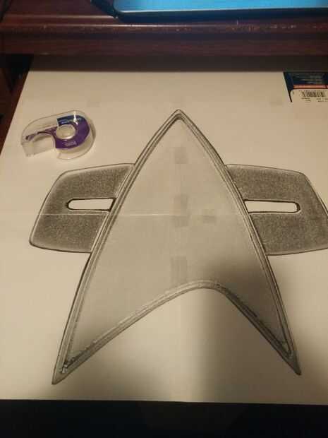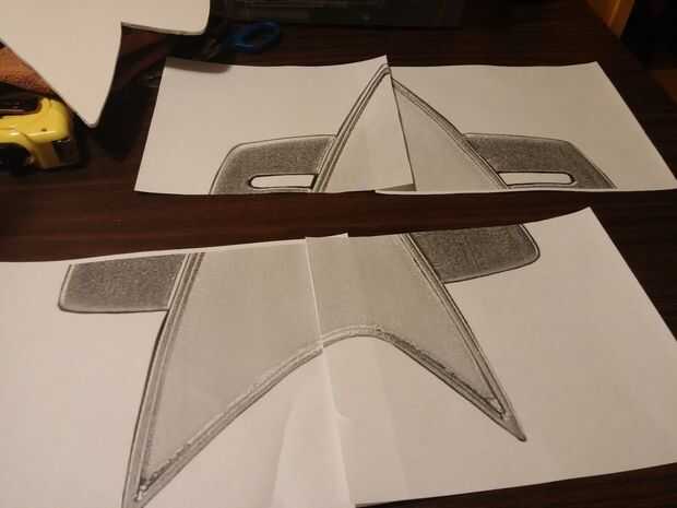 También cortar los márgenes superiores e izquierdos de la parte derecha de la parte inferior de la combadge.