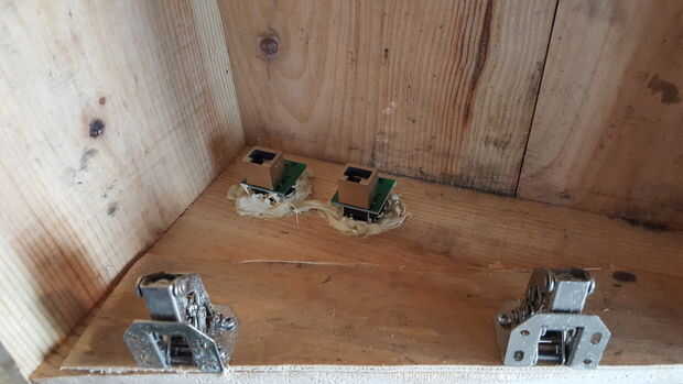 En la última foto, vemos los 2 conectores rj45. Hice un trabajo chungo allí al principio, pero tan pronto como estaba seco, lijar todo a perder.