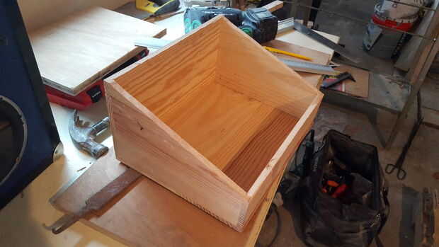 El único corte que tienes que hacer se basa en la parte delantera de la caja y depende del ángulo que desea tener entre la parte delantera y trasera de la caja.