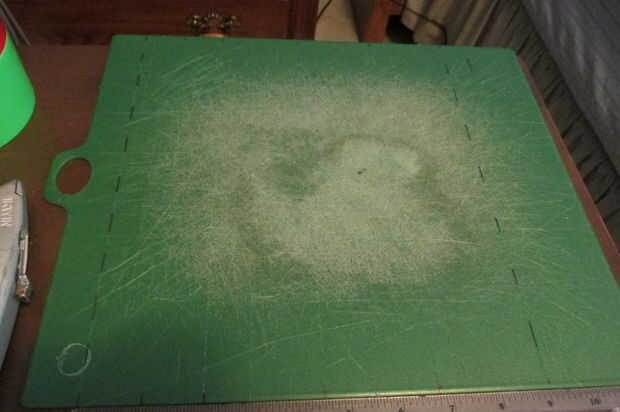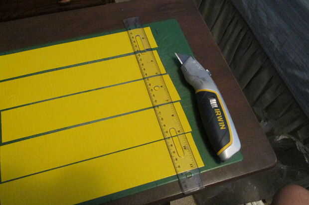 Puedo caber 5 en esta tabla de cortar, y tengo 4 columnas marcadas. Esto me da 20 conos por sesión.
