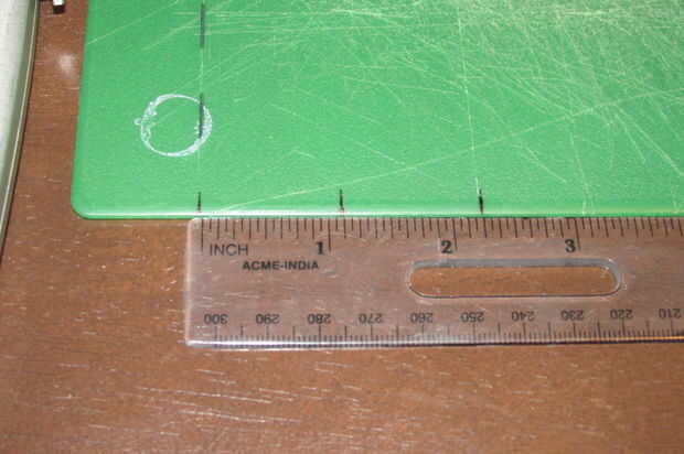 Utilice la regla para cortar de un lado de las marcas a la otra, realizar cortes perpendiculares. Las piezas de exceso pueden ser peladas y arrojadas.