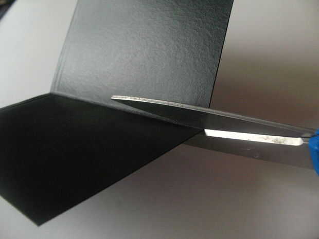 Usando las tijeras, corte un 1/8-3/16 de pulgada de la raja en la parte superior e inferior de la cubierta en el pliegue.