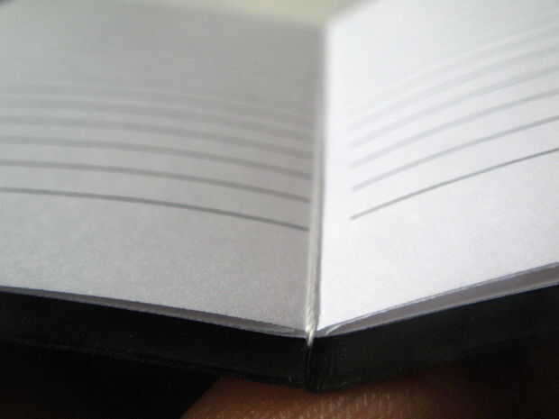 Obtener el primero de los cuatro cuadernos de PocketMod establece un lado anterior y abierto para el centro con dos solapas a la izquierda y derecha. Este descanso en la tapa que acaba de hacer.