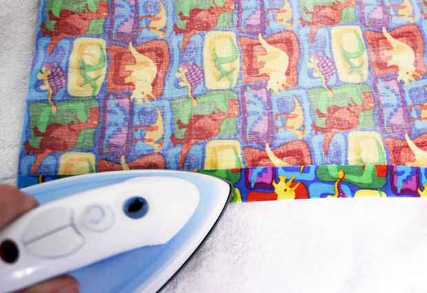Doblar los bordes hacia el interior y cuidadosamente con la punta de la plancha fusible el vinilo a sí mismo.